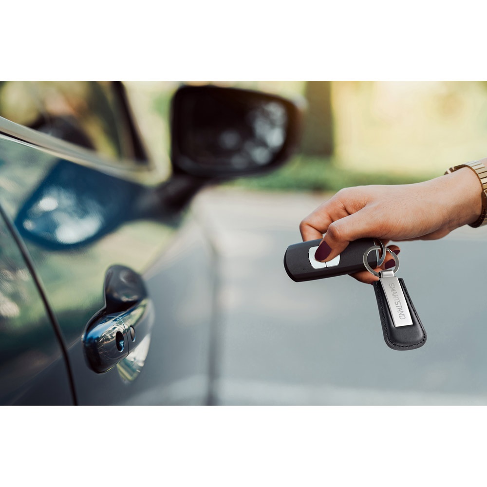 Porta-chaves em metal e PU. Fornecido em caixa de oferta. 38 x 76 x 9 mm