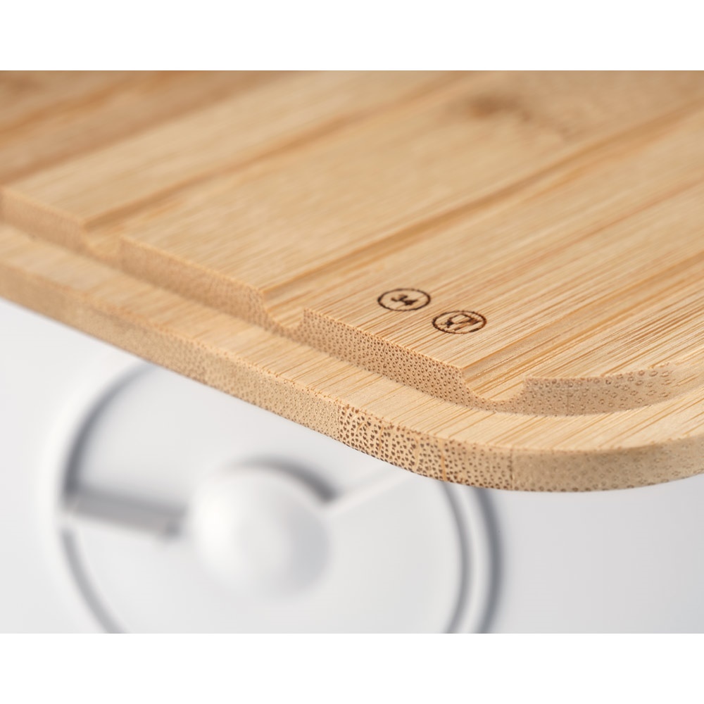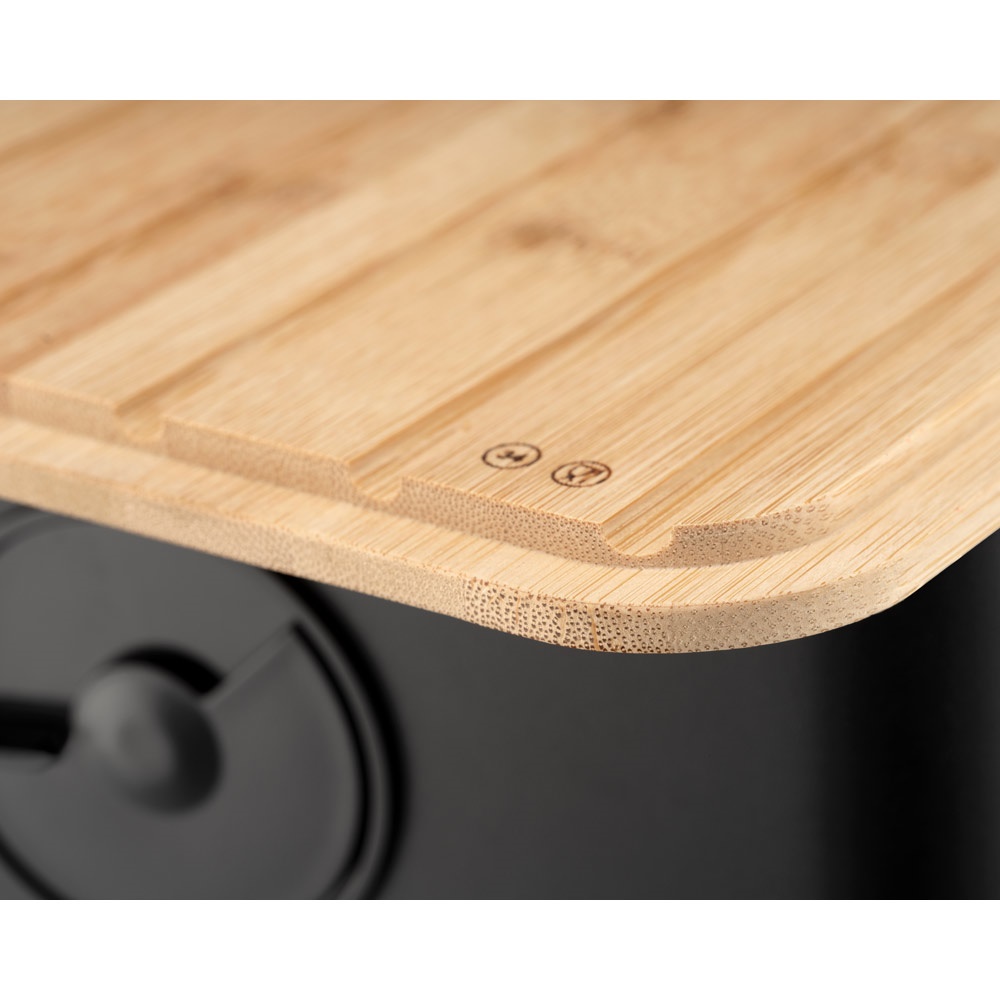 Caixa de pão fabricada com tampa em bambu. A tampa, com ranhuras para capturar migalhas, pode servir também como tábua de corte ou bandeja para servir o seu pão. A caixa para pão Bistro é uma peça versátil e elegante que constitui uma solução prática para a conservação do seu pão e outros alimentos. Apenas a caixa é adequada para máquina de lavar louça. Tamanho S. Fornecido em manga de cartão de oferta. 294 x 107 x 194 mm
