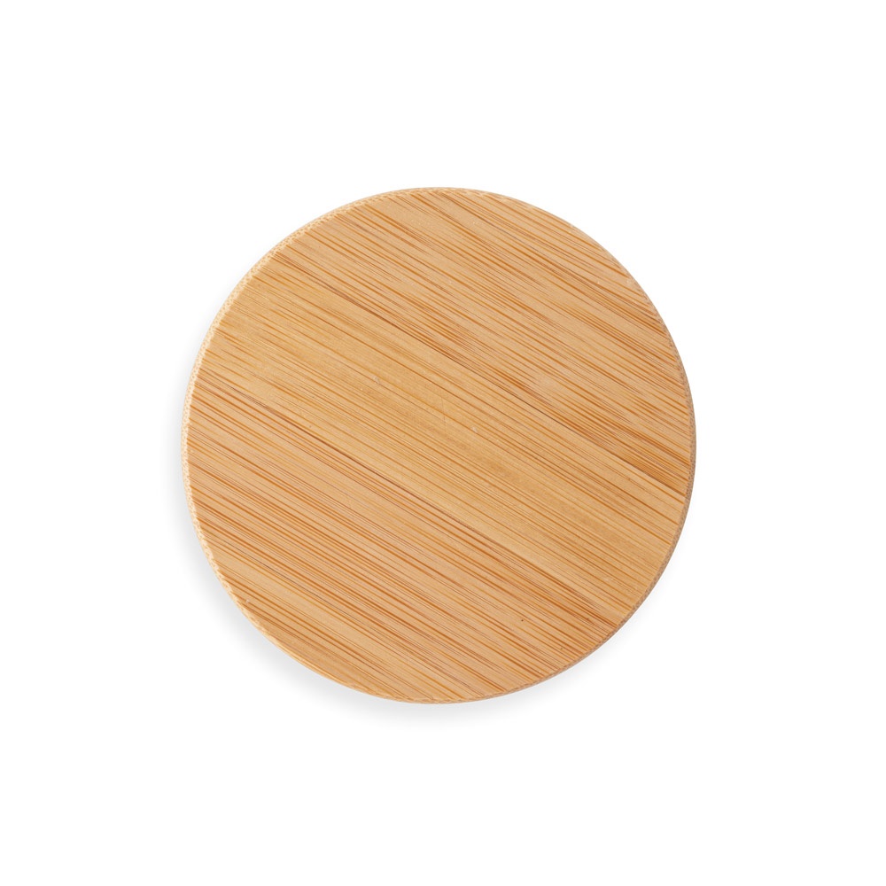 Copo de viagem em vidro borossilicato com parede dupla isolada a ar e tampa em bambu. Copo com capacidade até 350 mL, ideal para líquidos frios ou quentes, tendo uma tampa com isolante em silicone que facilita o transporte do copo evitando salpicos. Apto para ir ao microondas e à máquina de lavar, retirando a tampa. Fornecido em caixa de oferta em papel kraft. Por ser um produto composto por materiais naturais, a cor do produto e o resultado da impressão podem variar entre produtos. ø91 x 119 mm