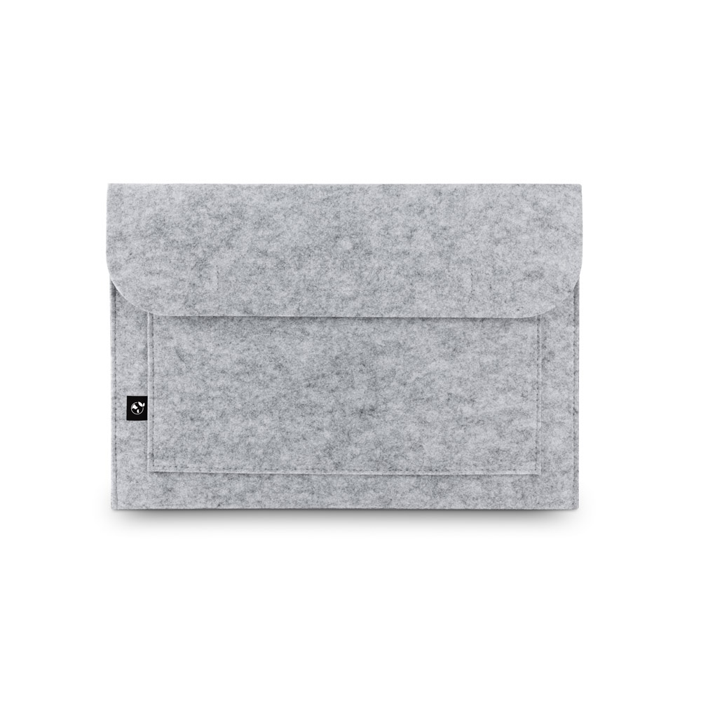 Pasta para computador portátil em feltro reciclado (100% rPET) com 1 compartimento principal para portátil até 14'. Bolso frontal com fecho em gancho e argola. 370 x 260 mm