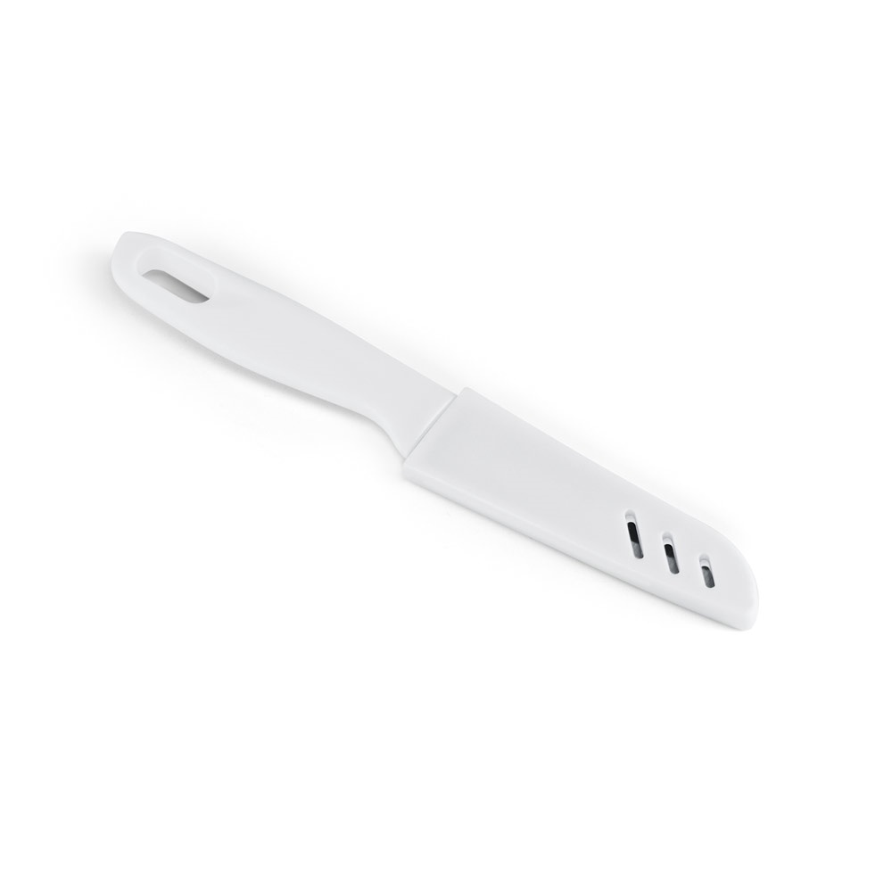 Faca em aço inoxidável e PP e com tampa protetora. 205 x 31 x 13 mm
