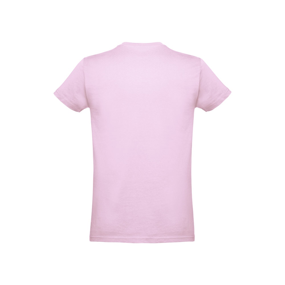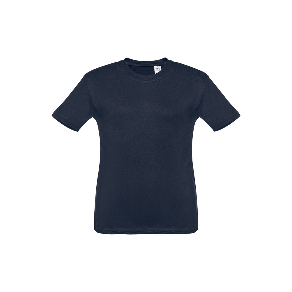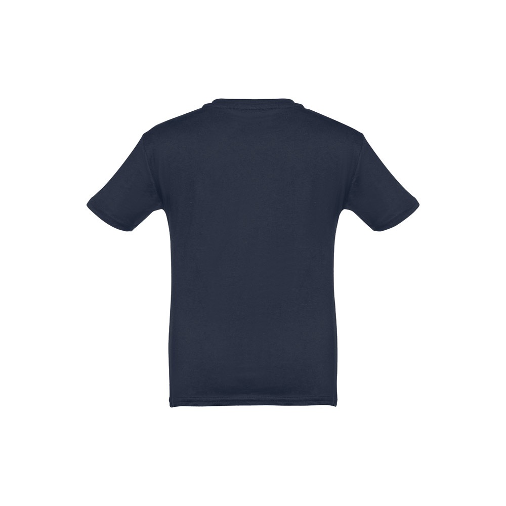 T-shirt para criança (unissexo) em malha jersey 100% algodão (190 g/m²) com fio de algodão cardado. Conté,m gola em Rib 1x1 com fita de reforço em jersey. Peça cortada e cosida com costura dupla nas mangas e parte inferior. Tamanhos: 2, 4, 6, 8, 10, 12