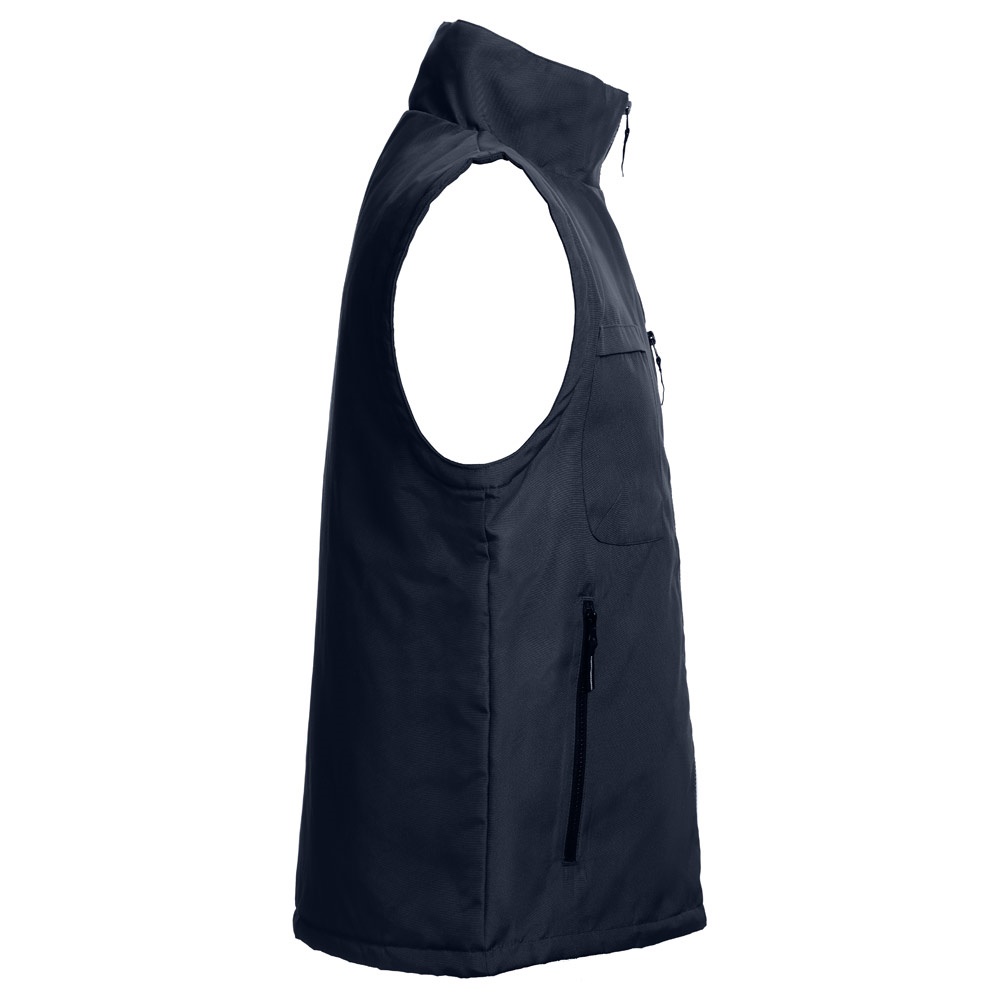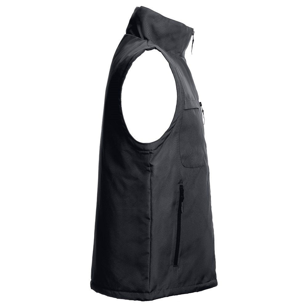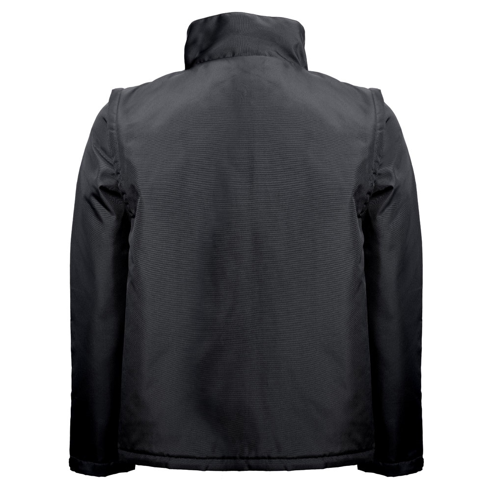 Casaco (unissexo) acolchoado em 100% poliéster (exterior: 170 g/m² em 100% poliéster oxford com revestimento acrílico, enchimento: 75 g/m² em 100% poliéster, interior: 65 g/m² em 100% poliéster tafetá). Convertível em colete, com mangas removíveis através de fecho. Contém gola forrada a malha polar e três bolsos com fecho. Acesso com fecho na parte posterior, para fácil personalização. Tamanhos: S, M, L, XL, XXL, 3XL