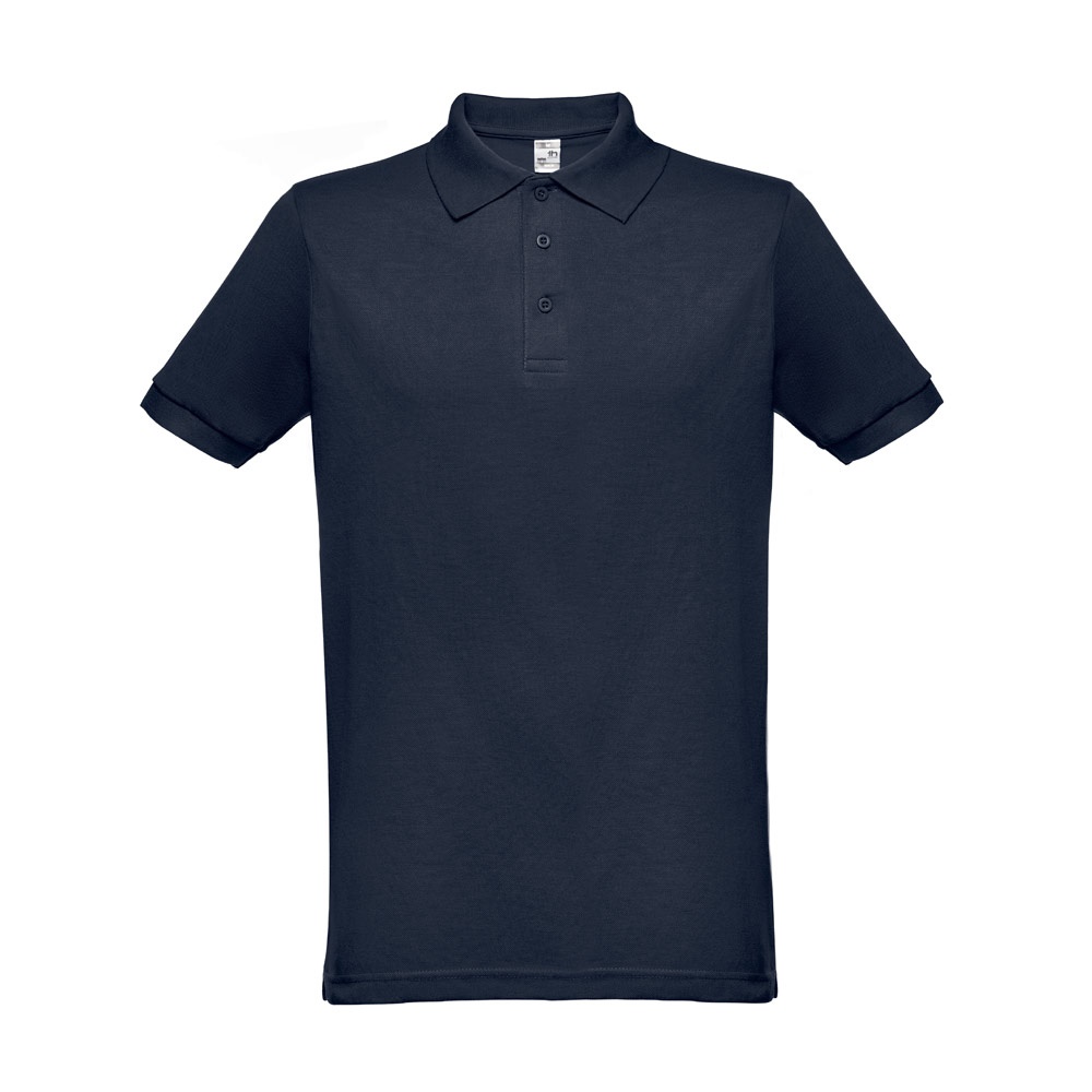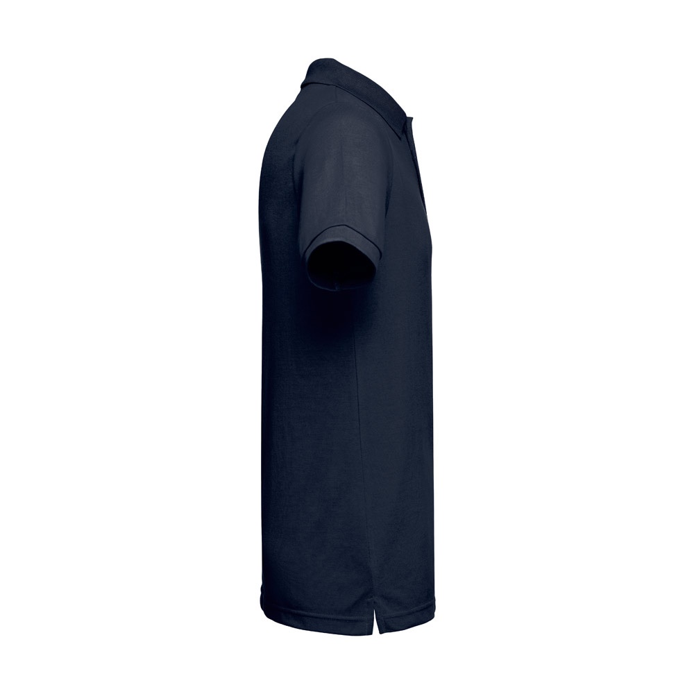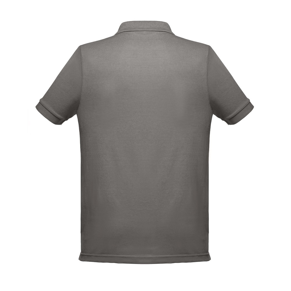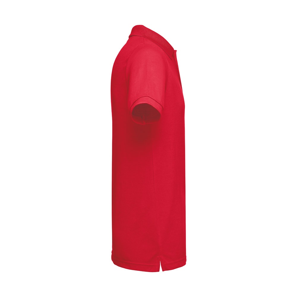 Polo de manga curta para homem em malha piqué, 35% algodão cardado e 65% polié,ster (200 g/m²). Cor 183: 85% algodão/15% viscose. Polo de corte regular com gola e mangas em Rib, sendo a gola reforçada com fita em malha piqué,. Conté,m carcela reforçada com 3 botões à cor (botão suplente inserido na costura interior). Peça cortada e cosida. Tamanhos: XS, S, M, L, XL, XXL