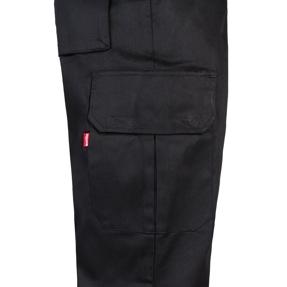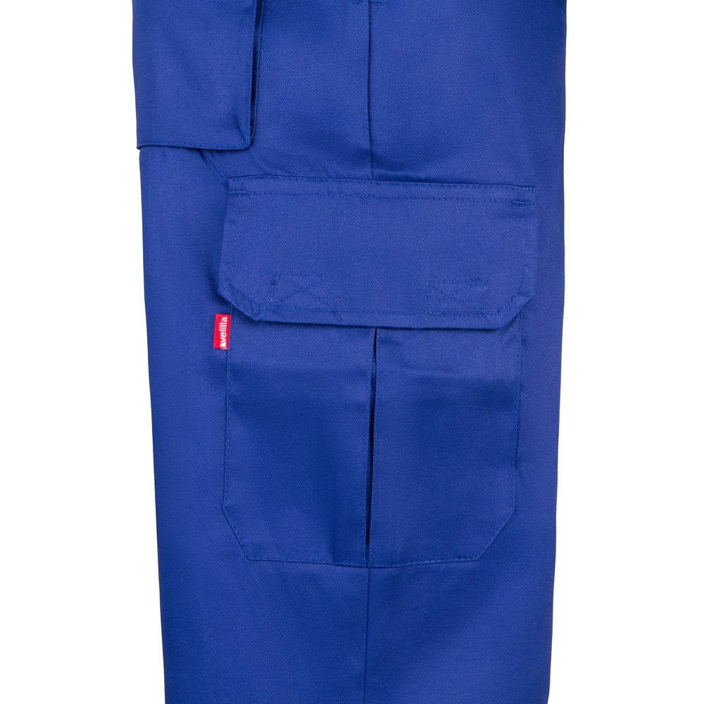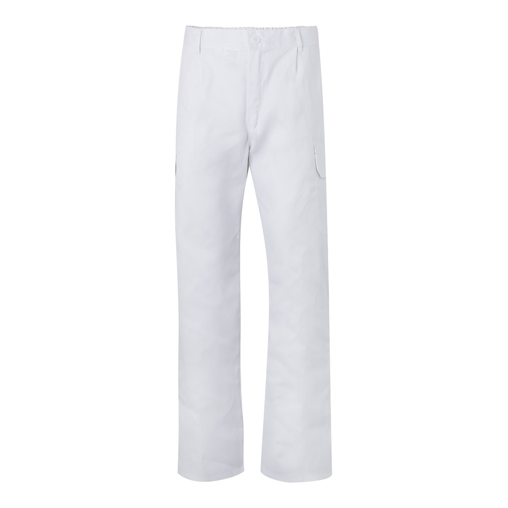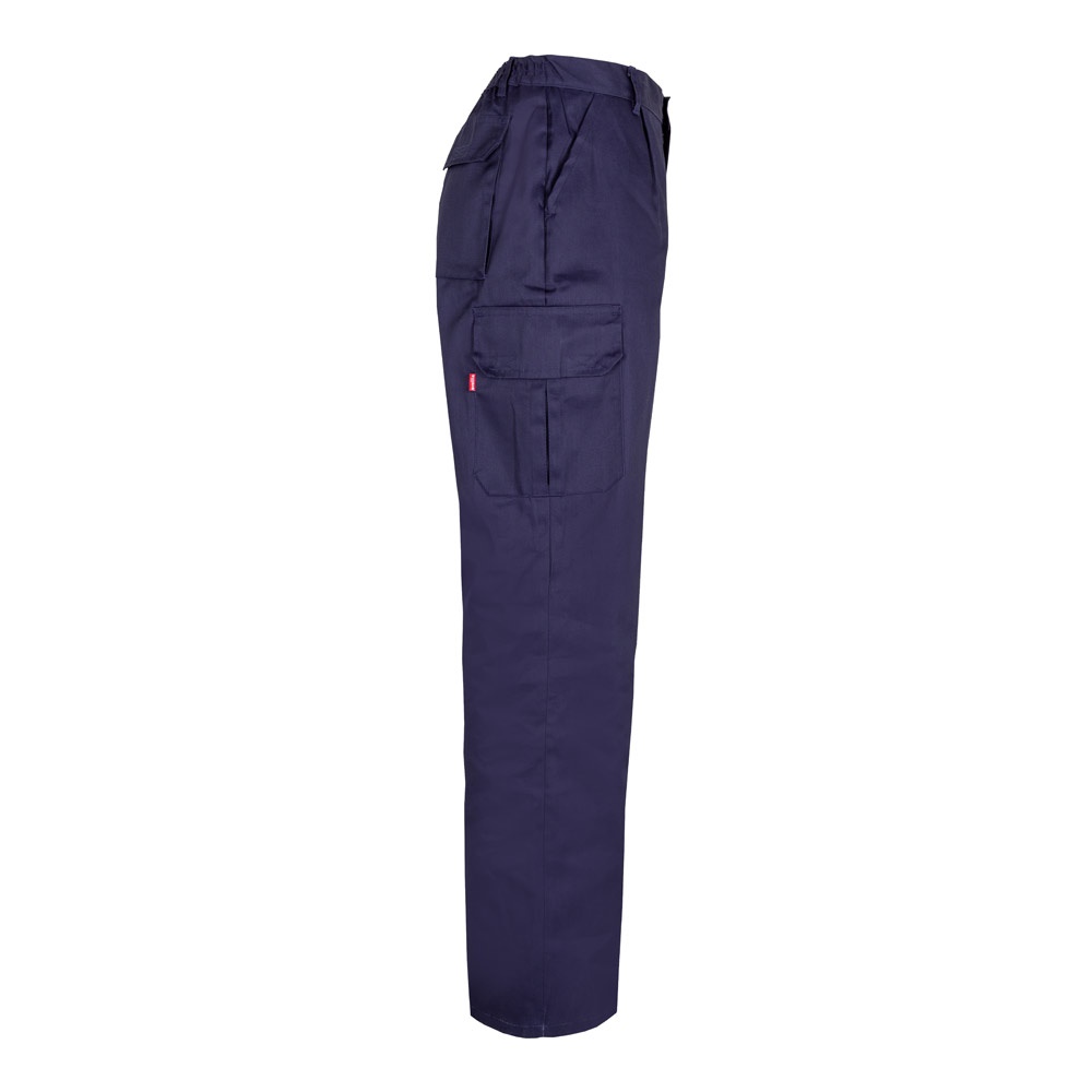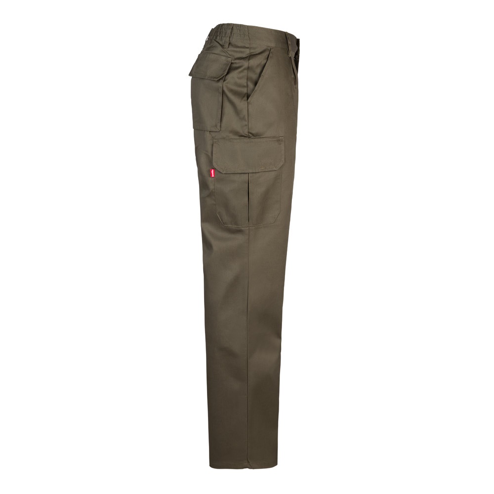 Calças em sarja (200g/m²) multibolsos,em algodão (35%) e poliéster (65%). Com cós elástico, e seis bolsos (2 bolsos franceses, 2 bolsos fole laterais e 2 bolsos fole traseiros). Tamanho: 34, 36, 38, 40, 42, 44, 46, 48, 50, 52, 54, 56, 58, 60, 62, 64